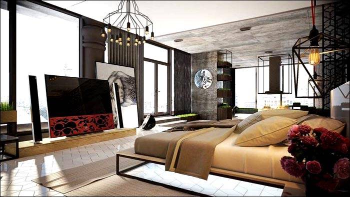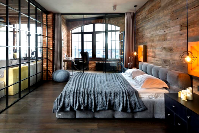 Εάν δεν σας αρέσει ο κλασικισμός στο σκηνικό, τότε μπορείτε να επιλέξετε έναν σχεδιασμό υπνοδωματίου σε στιλ σοφίτας. Για ένα τέτοιο εσωτερικό, είναι σημαντικό να επιλέξετε πρακτικά έπιπλα, για παράδειγμα, συρόμενα ερμάρια, αναδιπλούμενες ντουλάπες ή συρόμενες ντουλάπες. Υπάρχουν ορισμένοι κανόνες για τη διακόσμηση ενός δωματίου σε αυτό το στυλ: