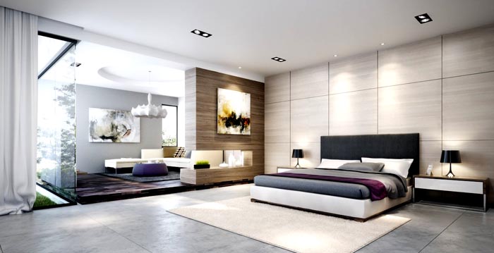 Ο σχεδιασμός του υπνοδωματίου γίνεται με μινιμαλιστικό πνεύμα με μοντέρνα ερμηνεία. Δηλαδή, το κύριο επίκεντρο είναι στο κρεβάτι, και πολλά είδη τρίτων όπως ράφια, ογκώδη ντουλάπια και κομμό απλά δεν χρησιμοποιούνται.