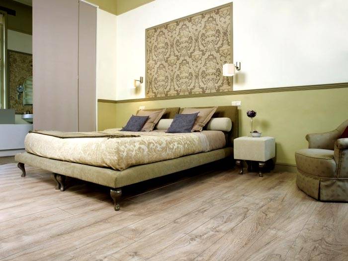 Το κάλυμμα του δαπέδου πρέπει να είναι ζεστό. Μπορεί να είναι χαλί, laminate και παρκέ από ξύλο. Η καλύτερη επιλογή για ένα υπνοδωμάτιο είναι μονόχρωμοι, λευκοί τοίχοι με μικρό μοτίβο.