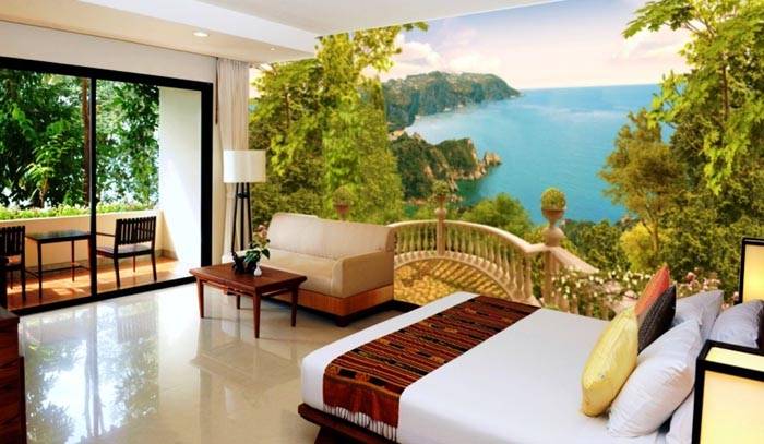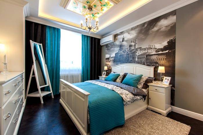 - μη τυπική επιλογή - σχεδιασμός υπνοδωματίου με ταπετσαρία φωτογραφιών.