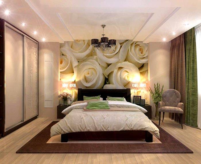 Απαιτείται ειδική προσέγγιση κατά το σχεδιασμό και την ανακαίνιση ενός υπνοδωματίου σε ένα διαμέρισμα. Οι πραγματικές φωτογραφίες σας επιτρέπουν να δείτε τις λεπτές αποχρώσεις της δημιουργίας ενός πρωτότυπου εσωτερικού. Είναι ιδιαίτερα σημαντικό για αυτό το δωμάτιο να επιλέξει βιώσιμα υλικά. Για διακόσμηση τοίχου, υφάσματα από καμβά ή ταπετσαρίες από χαρτί είναι κατάλληλα. Οι επιχρισμένες επιφάνειες μπορούν να βαφτούν με χρώματα με βάση το νερό. Τα χαλιά δεν πρέπει να χρησιμοποιούνται καθώς συλλέγουν γρήγορα σκόνη. Για το δάπεδο, μπορείτε να επιλέξετε παρκέ, φυσικό ξύλο ή παρκέ. Εάν το δωμάτιο είναι μικρό, τότε είναι καλύτερα να μην χρησιμοποιείτε δομές οροφής πολλαπλών επιπέδων.