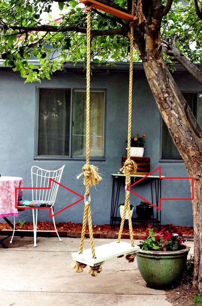 Η απλούστερη εξωτερική κούνια για παιδιά στη χώρα μπορεί να γίνει σε μερικές ώρες, όχι περισσότερο. Μετά την επεξεργασία των άκρων, η σανίδα θα κάνει μια καλή θέση. Για να αποφευχθεί η ολίσθηση των καλωδίων σχοινιών, γίνονται εσοχές σε αυτό το μέρος. Τα δέντρα κήπων πρέπει να εξεταστούν προσεκτικά. Ένα ισχυρό κλαδί σε ύψος 2 μέτρων ή περισσότερο από το έδαφος θα κάνει. Ένας σφιγκτήρας εγκαθίσταται στον τόπο εγκατάστασης του άνω προσαρτήματος, το οποίο θα αποτρέψει την επαφή μεταξύ του σχοινιού και του δέντρου.Αυτό θα αυξήσει την αξιοπιστία αυτού του κόμβου.