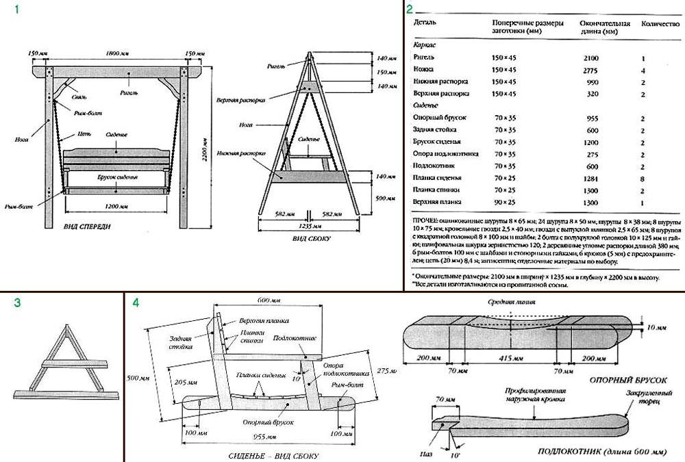 Με τη βοήθεια αυτών των φωτογραφιών, ακόμη και χωρίς ειδικά σχόλια, μπορείτε να καταλάβετε πώς να ενισχύσετε μόνοι σας τα πλαϊνά μέρη του ταλαντευόμενου καθίσματος για μια καλοκαιρινή κατοικία