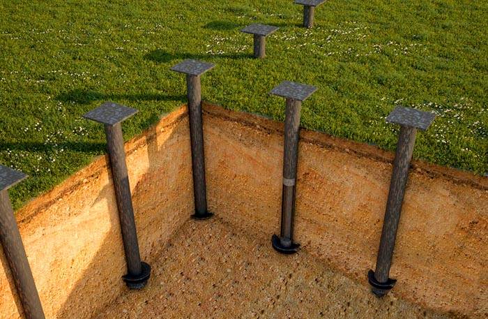 Σπουδαίος! Δώστε προσοχή στη σκληρότητα της επιφάνειας σε αυτήν την επιλογή. Εάν είναι απαραίτητο, τοποθετούνται ειδικά στηρίγματα κάτω από τα πόδια, τα οποία αυξάνουν την περιοχή στήριξης. Μπορείτε επίσης να χρησιμοποιήσετε μια πλάκα οπλισμένου σκυροδέματος κατάλληλου μεγέθους ή να ρίξετε μια μικρή βάση με ενισχυμένο κονίαμα.