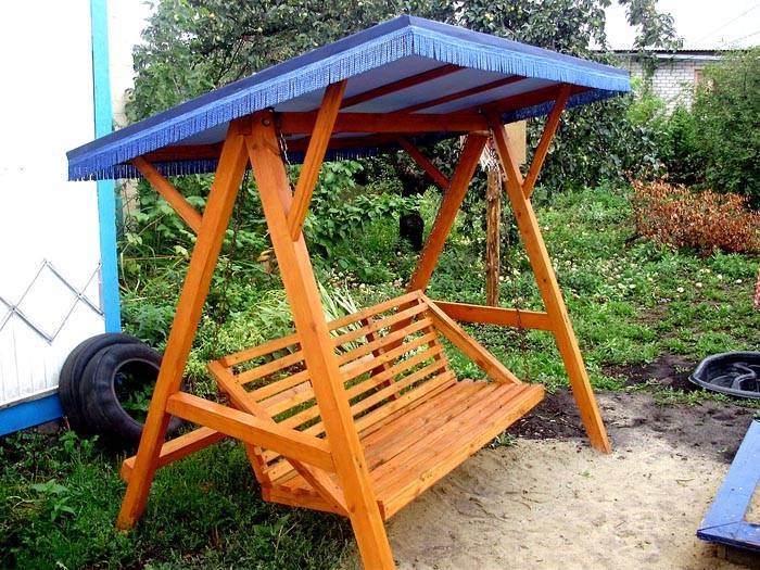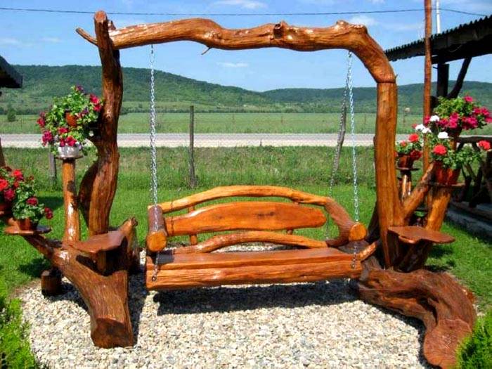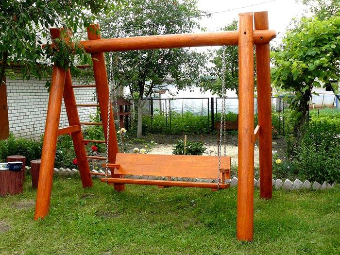 Αλλά με μια προσεκτική μελέτη αυτής της φωτογραφίας, δεν είναι δύσκολο να ανακαλύψετε ότι μια τέτοια ξύλινη ταλάντευση δεν είναι πολύ δύσκολο να φτιάξετε με τα χέρια σας. Αλυσίδες, δακτύλιοι, συνδετήρες είναι τυπικά μεταλλικά προϊόντα. Μπορείτε να παραγγείλετε δοκάρια και άλλα ξύλινα μέρη εργαστήριο ξυλουργικήςή δημιουργήστε το μόνοι σας.