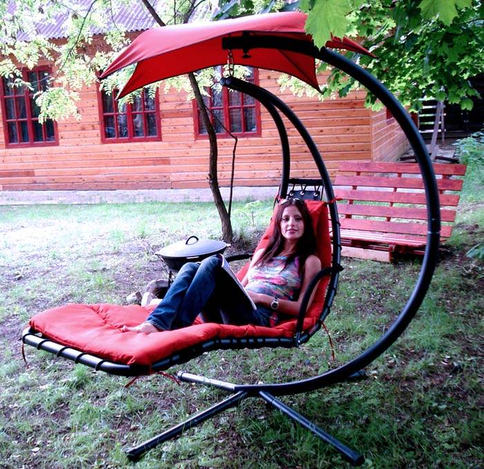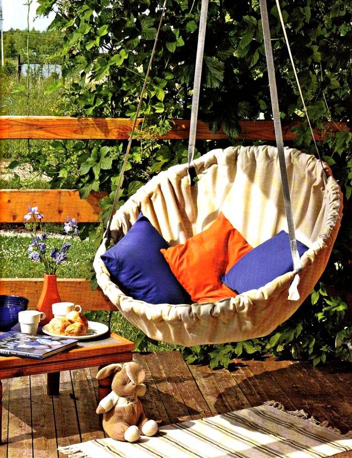 Από αυτήν τη φωτογραφία, είναι σαφές ότι είναι δύσκολο να δημιουργηθεί μια τέτοια δομή στο σπίτι.Με τη βοήθεια του βίντεο, μπορείτε να μάθετε πώς να κάνετε μια σπιτική κούνια για τις εξοχικές κατοικίες του δρόμου και του καλοκαιριού: