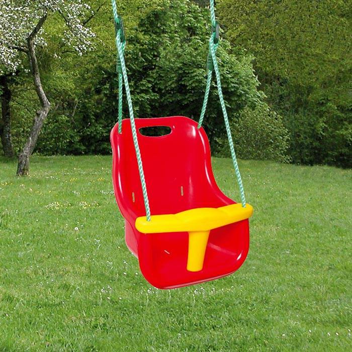 Πλαστικό κάθισμα για παιδική κούνια με στεγανοποιητικό διαμέρισμα. Το εργονομικό σχήμα παρέχει άνετη εφαρμογή για το παιδί. Μια πρόσθετη ζώνη μέσης μπορεί να τοποθετηθεί σε ειδικές υποδοχές