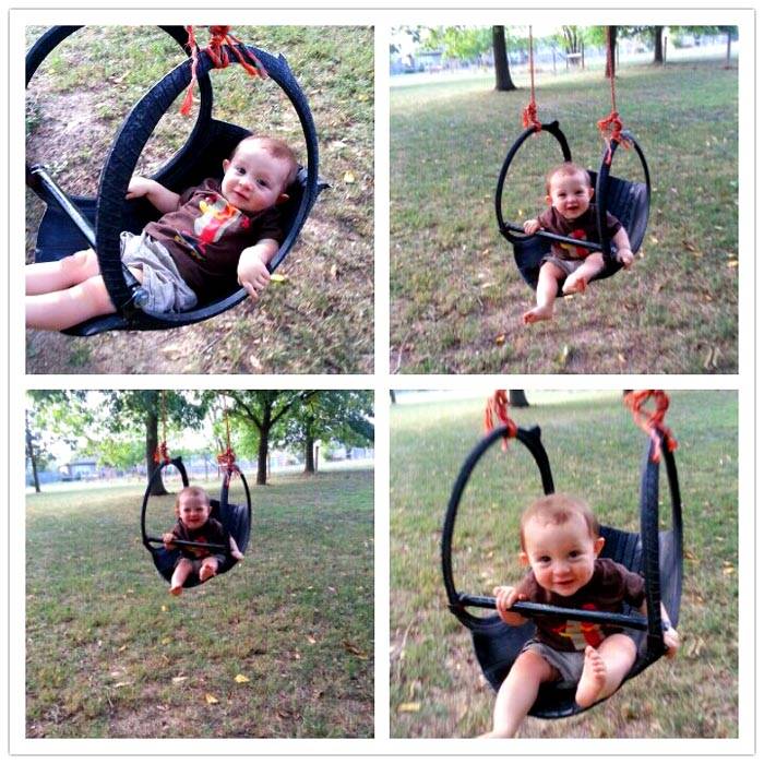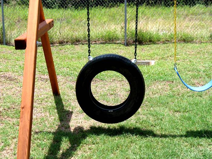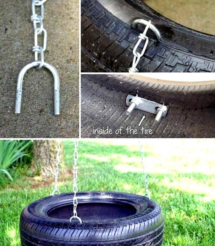 Ένα ελαστικό αυτοκινήτου είναι μια καλή, φθηνή βάση για διάφορα σχέδια. Τέτοια καθίσματα για υπαίθρια παιδική κούνια για εξοχικές κατοικίες μπορούν να στερεωθούν σε αλυσίδες σε οριζόντια και κάθετη θέση