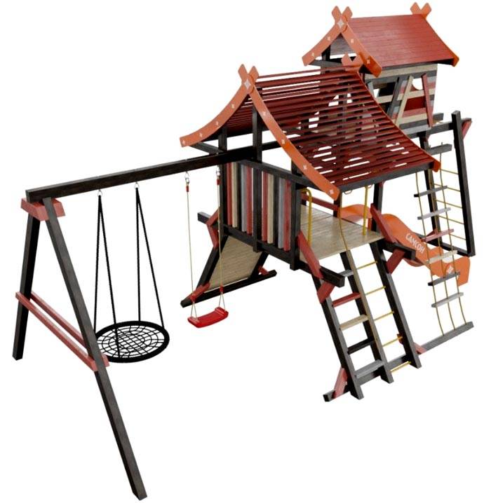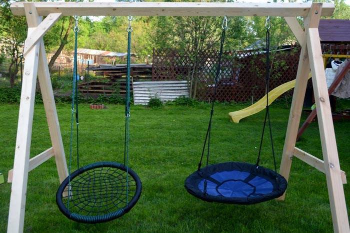 Για την κατασκευή ενός μεγάλου ψυχαγωγικού και αθλητικού συγκροτήματος για παιδιά κοντά στο σπίτι, είναι επίσης κατάλληλη μια κούνια φωλιάς