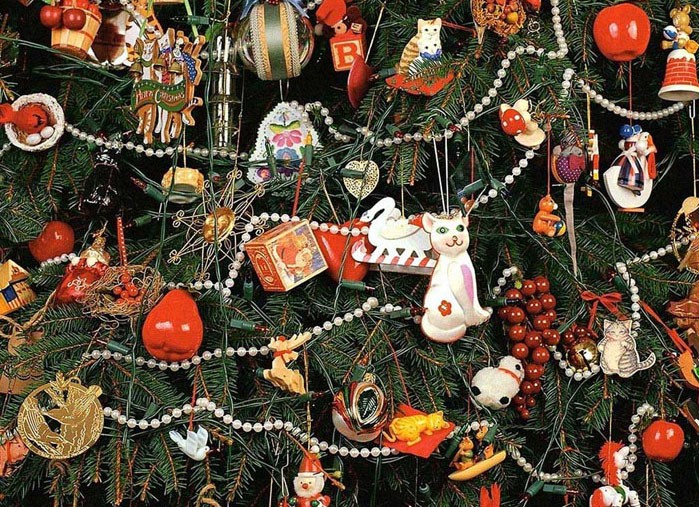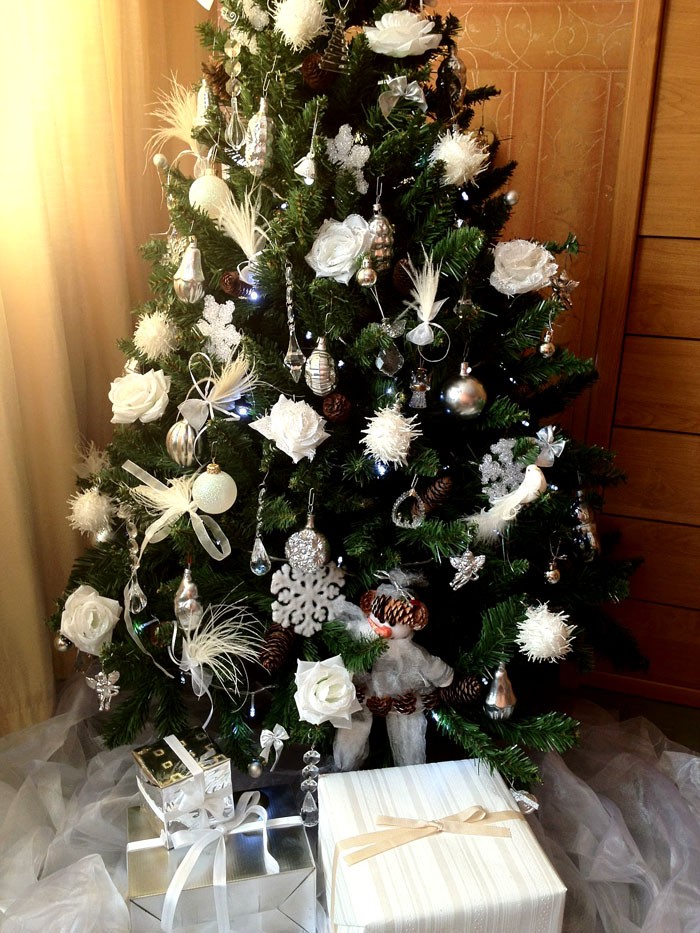 Η περίπτωση που μπορεί να υπάρχει πολλή διακόσμηση: ένα δέντρο διακοσμημένο με λουλούδια, μπάλες και παιχνίδια δαντέλας φαίνεται εκπληκτικό