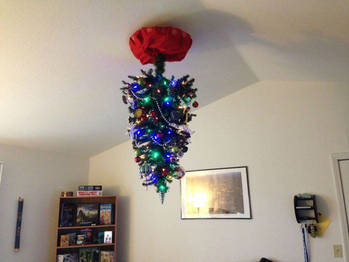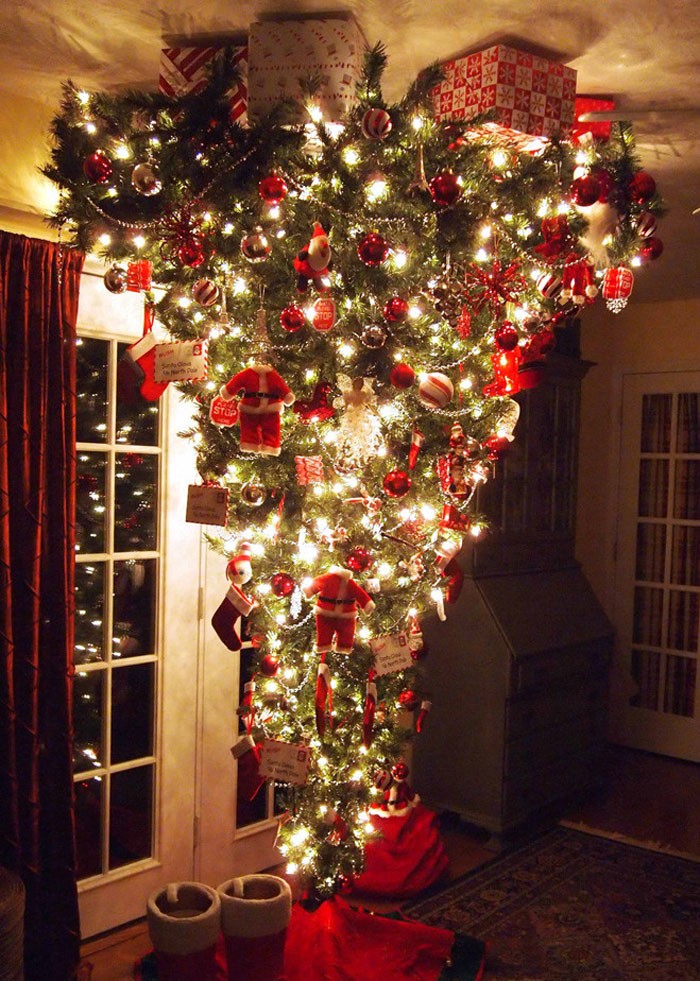 Μπορείτε να τοποθετήσετε το δέντρο ανάποδα από την οροφή στο πάτωμα, να τοποθετήσετε διακοσμητικά δώρα στην οροφή