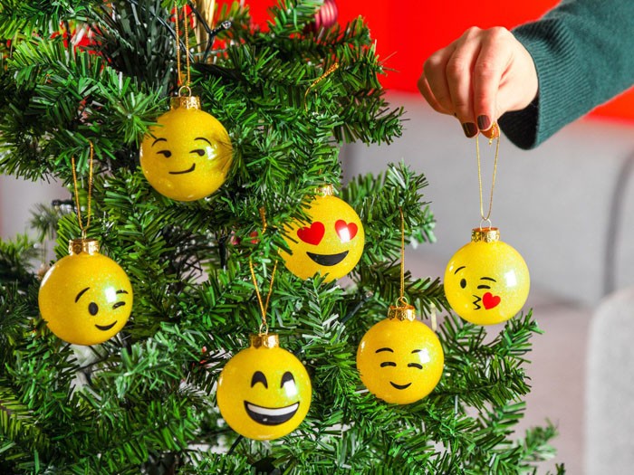 Ένα δέντρο διακοσμημένο με emoticon θα φαίνεται δημιουργικό. Μπορείτε να χρωματίσετε παλιές μπάλες ή να αγοράσετε κενά