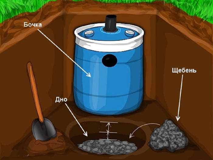 - Σε καλά στραγγιζόμενο έδαφος, το τελικό λάκκο καλύπτεται με διογκωμένο πηλό ή σπασμένο τούβλο για καλύτερη απορρόφηση.