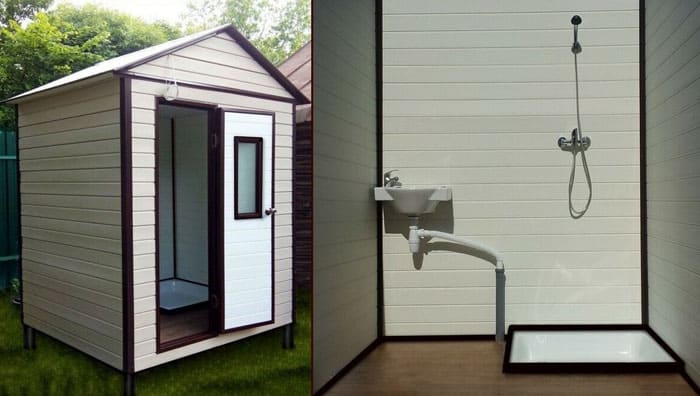 Η εσωτερική επένδυση του εξωτερικού ντους και τουαλέτας μπορεί να κατασκευαστεί με πλαστικό ή πλακάκια
