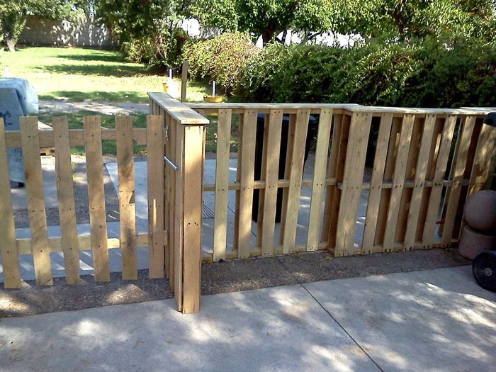 Εάν χρειάζεστε ένα ψηλό φράχτη, τακτοποιήστε τις παλέτες σε δύο σειρές. Χρησιμοποιήστε ένα μεταλλικό πλαίσιο σωλήνα για τα ράφια. Χρωματίστε το φράχτη σύμφωνα με το γούστο σας και διακοσμήστε τον γλάστρες... Για να ολοκληρώσετε την ιδέα, μπορείτε να δημιουργήσετε ένα αντίστοιχο wicket.
