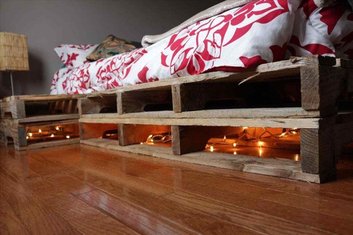 | Το κόστος του τελικού προϊόντος είναι κυριολεκτικά μια δεκάρα. | Δεν είναι εύκολο να φροντίζετε τις κατασκευές παλετών - η σκόνη συσσωρεύεται κάτω από αυτές, κάτι που δεν είναι εύκολο να καθαριστεί. |