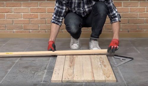Η ίδια η εγκατάσταση θα είναι περίπλοκη μόνο με την εγκατάσταση υστέρησης σε απόσταση όχι μεγαλύτερη από 120 εκατοστά. Δεν χρειάζεται να αποσυναρμολογήσετε παλέτες για εγκατάσταση δαπέδων. Απλώς εκθέστε τα σε όλο τον ιστότοπο, ισοπεδώνοντάς τα σε ύψος με τούβλα και στερεώστε τα μαζί. Για να αποκτήσετε μια σταθερή επιφάνεια, γεμίστε τα κενά μεταξύ των σανίδων με λωρίδες. Το μόνο που μένει είναι να καθαρίσουμε και να βάψουμε το τελικό δάπεδο.