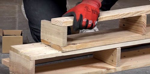 Εάν αποσυναρμολογήσετε την παλέτα σε σανίδες, ταξινομήστε τα μέρη κατά πλάτος, αυτό θα απλοποιήσει την επιλογή τους στο μέλλον. Ακόμα και πριν από τη συναρμολόγηση, μπορείτε να επεξεργαστείτε το δέντρο με μια ανθεκτική στην υγρασία ένωση ή ακόμα και να το βάψετε, επειδή η τελική δομή θα είναι πιο δύσκολο να βαφτεί.