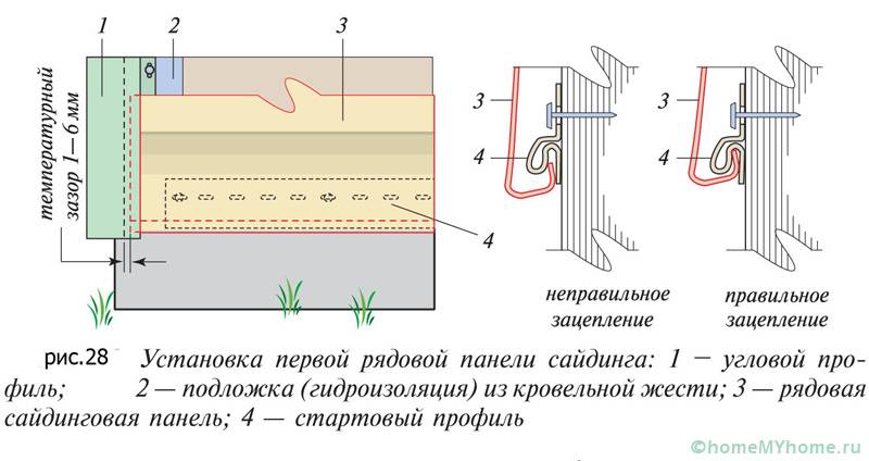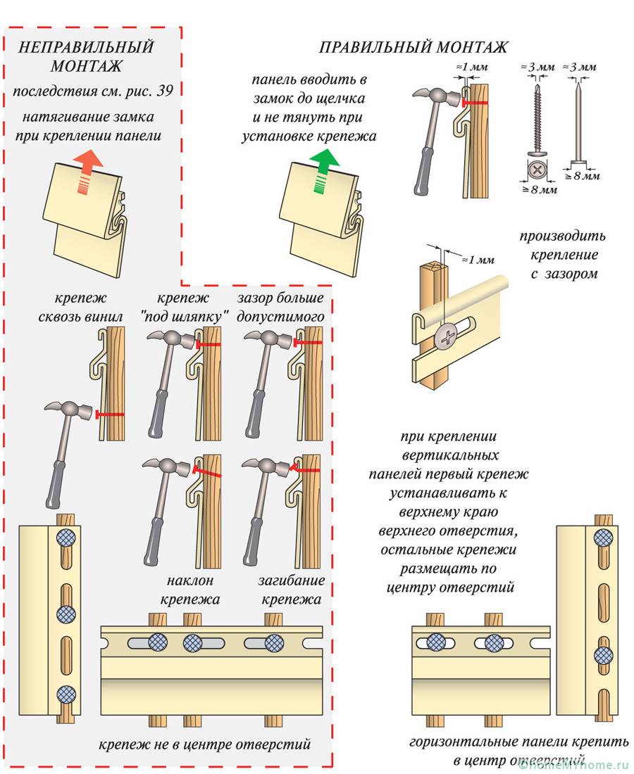 - Κατά την εγκατάσταση μεταλλικών ή βινυλίου πάνελ, είναι απαραίτητο να τηρείτε το διάκενο με τους συνδετήρες, καθώς μπορούν να διογκωθούν λόγω θερμικών δονήσεων.