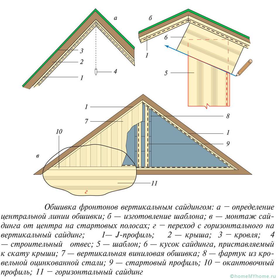 Για να καλύψουμε το αέτωμα, εγκαθιστούμε ένα εσωτερικό γωνιακό στοιχείο στη διασταύρωση με τον τοίχο και ένα εξωτερικό στο τέλος της οροφής ή ένα προφίλ J. Η επένδυση γίνεται με τον ίδιο τρόπο όπως και για τους τοίχους.