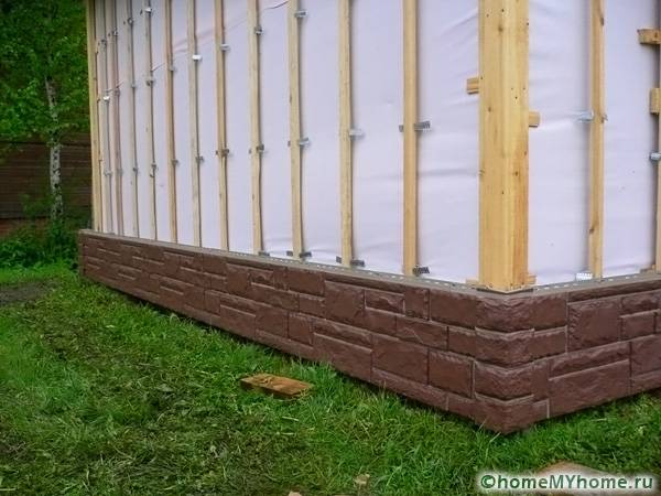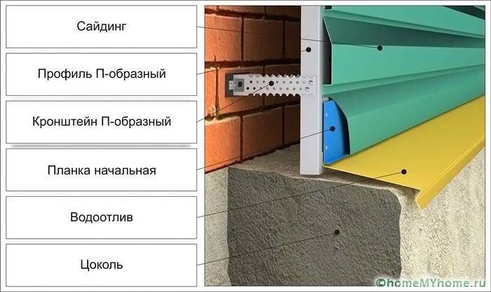 Πάνω από το πηχάκι εγκαθιστούμε προφίλ J στα οποία θα τοποθετηθούν τα προσόψεις. Δεδομένου ότι όλα τα δομικά στοιχεία ευθυγραμμίστηκαν αυστηρά κατά μήκος ενός τεντωμένου οριζόντιου σχοινιού, δεν θα υπάρξουν προβλήματα με την εγκατάσταση των προφίλ.