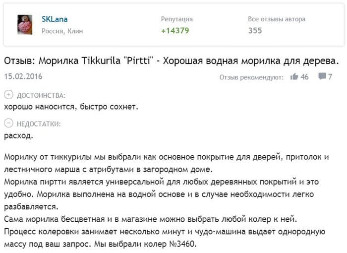 Σχόλια σχετικά με τη χρήση του λεκέ Tikkurila "Pirtti":