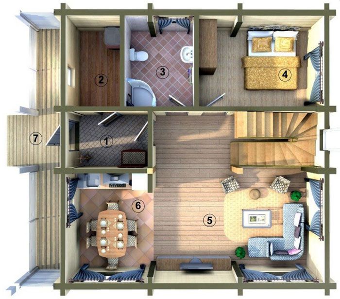 Τέτοιες κατασκευές, με ένα μικρό εμβαδόν κτιρίων, καθιστούν δυνατή τη δημιουργία ολοκληρωμένων χώρων διαβίωσης σε δύο επίπεδα.