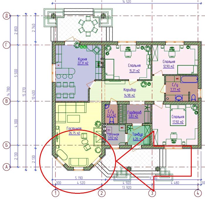 Ας αναλύσουμε τις ενότητες ενός τυπικού οικιακού έργου.Η πρώτη ενότητα καθορίζει τις γενικές παραμέτρους που χαρακτηρίζουν μια τυπική δομή. Οι διαστάσεις των χώρων, η θέση των μπλοκ πόρτας και παραθύρου. Ακολουθούν επίσης: