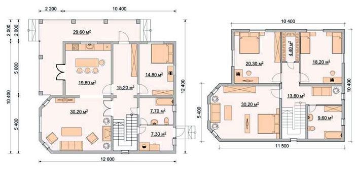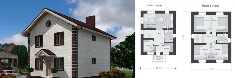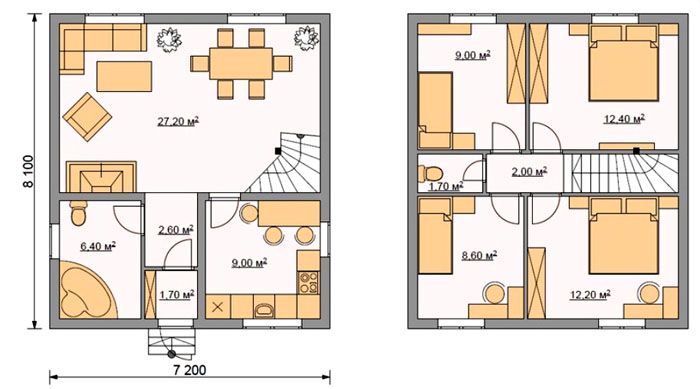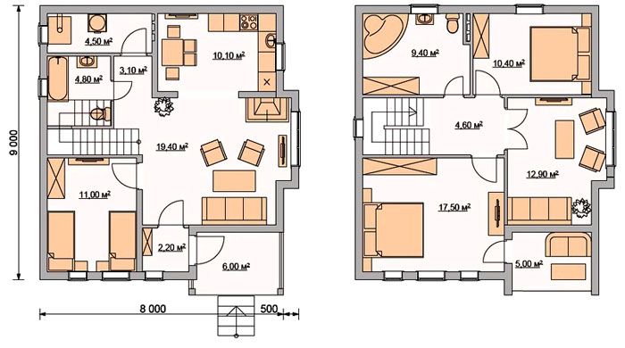 Σχέδια για διώροφα σπίτια. Πεδίο εφαρμογής και διακριτικά χαρακτηριστικά, πλεονεκτήματα και μειονεκτήματα, υλικά · διατάξεις σπιτιών 9x9, 10x10, 7x7, 6x8, 6x10, 9x6, 12x12 μέτρα - στη δημοσίευσή μας.