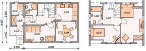 - Το έργο ενός διώροφου σπιτιού 8 × 8 από μπλοκ αφρού