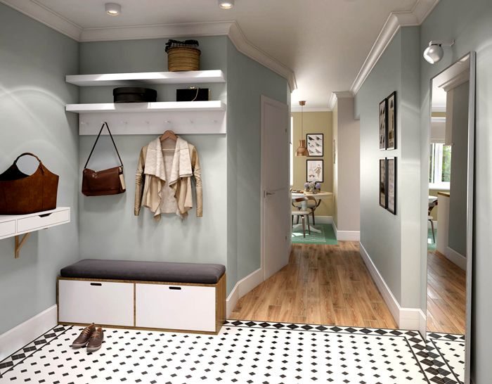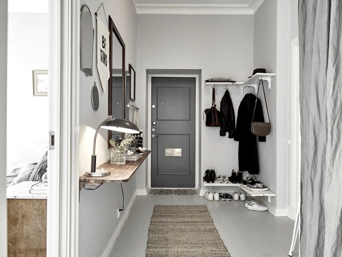 Στη διακόσμηση του διαδρόμου, είναι σημαντικό τα επιφανειακά υλικά να πλένονται και να καθαρίζονται εύκολα. Τα ανοιχτά χρώματα του σκανδιναβικού στιλ θα κάνουν τον μικρό χώρο οπτικά μεγαλύτερο και η χρήση νέων υλικών θα απλοποιήσει τη διαδικασία καθαρισμού.
