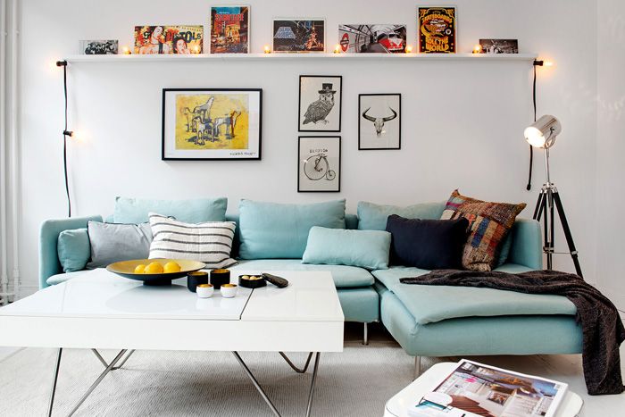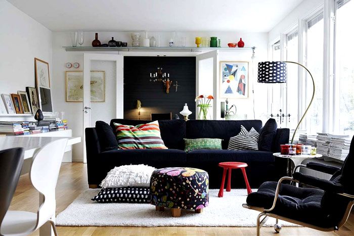 | Η παρουσία φωτεινών τόνων | Οι ασκητικοί στείροι τόνοι του σκανδιναβικού εσωτερικού συμπληρώνονται από φωτεινά αξεσουάρ: ζωντανό πράσινο, πίνακες ζωγραφικής και αφίσες. |