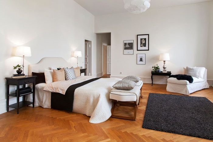 Η διακόσμηση δαπέδου είναι ένα σημαντικό μέρος του σκανδιναβικού στιλ. Τα δάπεδα είναι συνήθως σκούρα, απλά, κλασικά ξύλινα παρκέ ή φυλλωτός... Μην εστιάζετε σε αυτό το μέρος του δωματίου, ώστε να μην υπάρχουν φωτεινά στολίδια ή πολύχρωμα χαλιά.