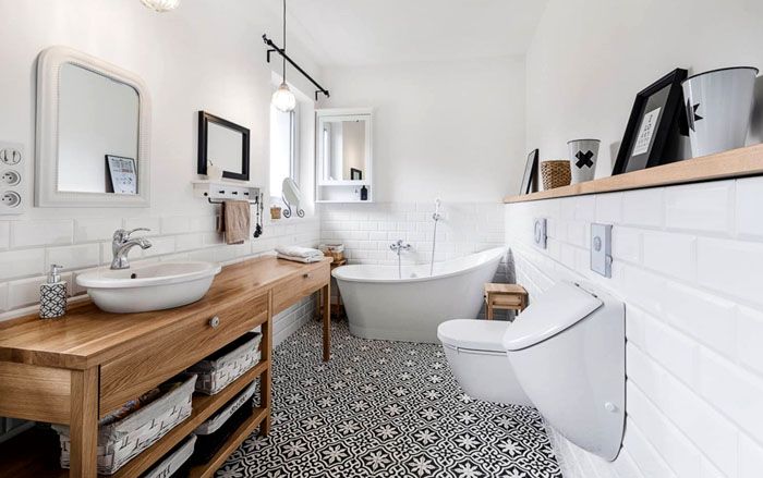 Μικτό σκανδιναβικό στιλ στο εσωτερικό του μπάνιου: