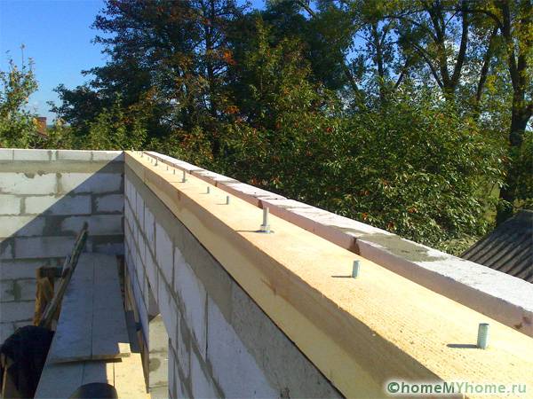 Μετά την εγκατάσταση του Mauerlat, βεβαιωθείτε ότι το ξύλο προστατεύεται από την υγρασία. Για να γίνει αυτό, είναι επικαλυμμένο με άσφαλτο ή ένα υλικό στεγανοποίησης τοποθετείται με επικάλυψη με απόσταση 10-15 cm.