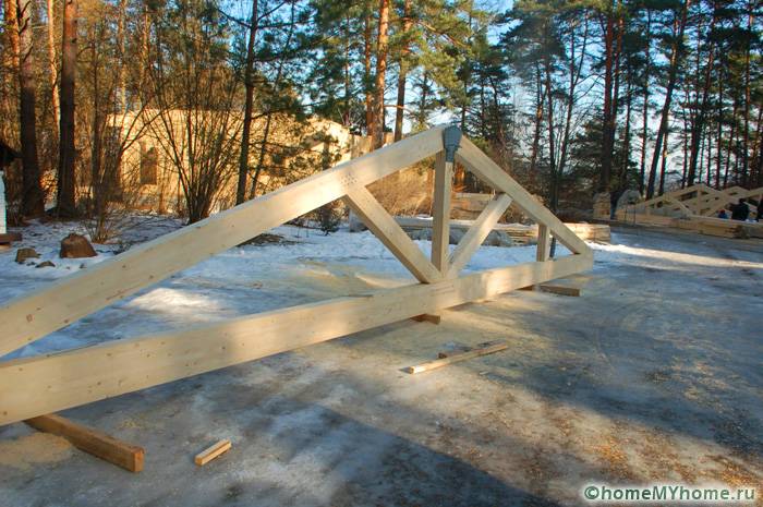 Πρώτον, τα δομικά στοιχεία που συναρμολογούνται στο έδαφος εγκαθίστανται και στις δύο πλευρές των πλαγιών, στερεώνονται προσωρινά κατά μήκος της κορυφογραμμής με σανίδες και στη συνέχεια τοποθετούνται ενδιάμεσα. Είναι σημαντικό να εγκατασταθεί με τέτοιο τρόπο ώστε να σχηματίζονται δύο επίπεδες επιφάνειες των πλαγιών. Εάν ο τύπος της οροφής είναι στρωμένος, τότε είναι απαραίτητο να εγκαταστήσετε στηρίγματα.
