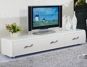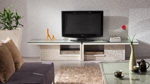 Τα ντουλάπια τηλεόρασης σε μοντέρνο στιλ (όπως στη φωτογραφία) δημιουργούνται από ειδικούς τύπους σκληρυμένου γυαλιού. Εάν σπάσετε ένα τέτοιο προϊόν, δημιουργούνται ασφαλή θραύσματα χωρίς αιχμηρές άκρες.