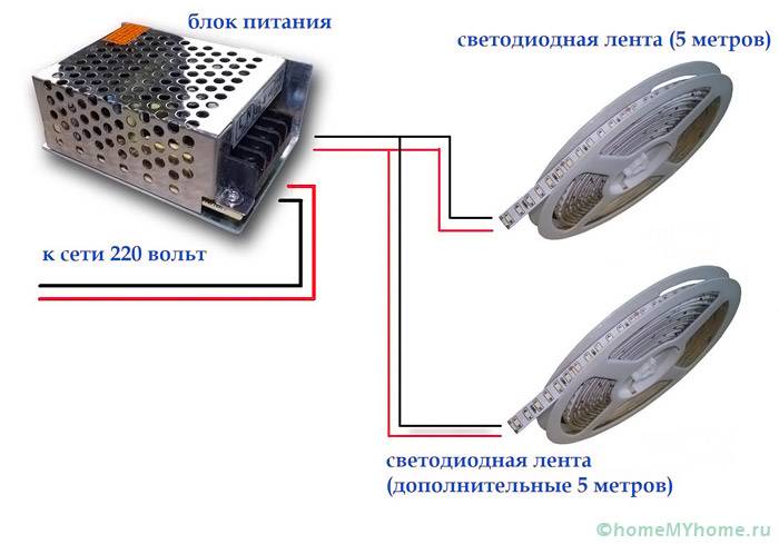 It is impossible to do without a 12V power supply for the LED strip when connected to the electrical network of a residential building. This device will have to be purchased from a store or assembled yourself from suitable parts. The main task is to reduce the voltage to the required values.