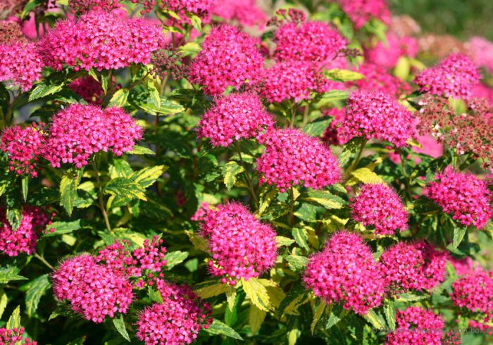 Spirea is spring and summer. The first is a shrub that blooms in May. It has characteristic white small flowers. The second blooms in June and has a special red color. Depending on the variety, the height can be from half a meter to 2.5. Summer spirea is much more common on the territory of Russia.