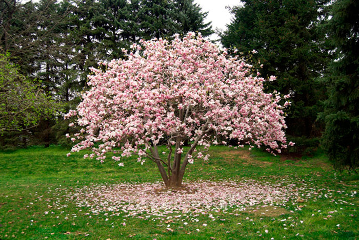 Magnolia is low, reaching only 1 meter, although gigantic specimens are met. They often grow in front gardens throughout Russia, as they easily take root even in poor soils. The plant loves warmth, but tolerates frost well.