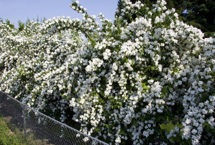 Large deciduous shrub up to 3 meters. It blooms all summer, so it is not very suitable for giving. And to please the eye on the site - a great option. It is important to note that the chubushnik has several selection lines and it is better to choose a domestic one.