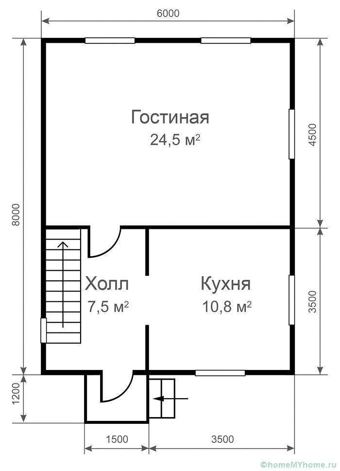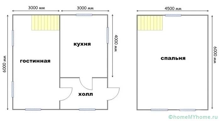 One of the most common options is considered to be a 6x8 m residential building.With such dimensions, all the main premises can be quite successfully located. Attic device upstairs allows you to significantly expand the living space. For permanent residence, the dimensions are quite suitable.
