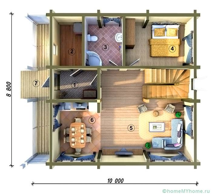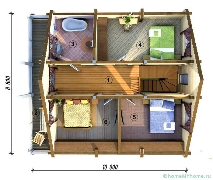 With such dimensions, it is unlikely that it will be possible to experiment with the layout. There are not so many options left as in the case of large structures. However, it is still possible to achieve a convenient location of the premises.