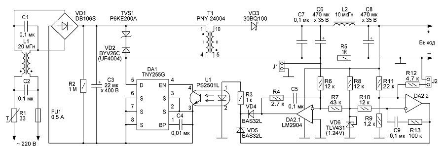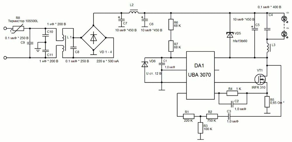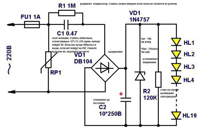 - 7 Connecting current converters for LEDs: driver circuit for a 220 V LED lamp