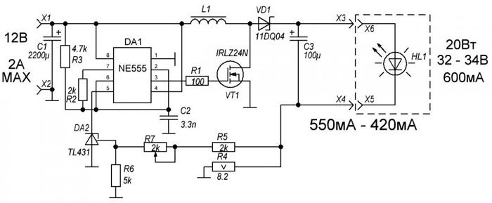 Due to the appearance of a large number of LED elements with a power of 1 ÷ 3 W and a low price, most people prefer to make home and automobile lighting on their basis. However, this requires a driver that will stabilize the current to the rated value.