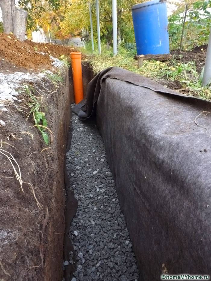 - The edges of the geofabric are overlapped with a slight overlap. The rest of the trench is covered with ordinary soil.