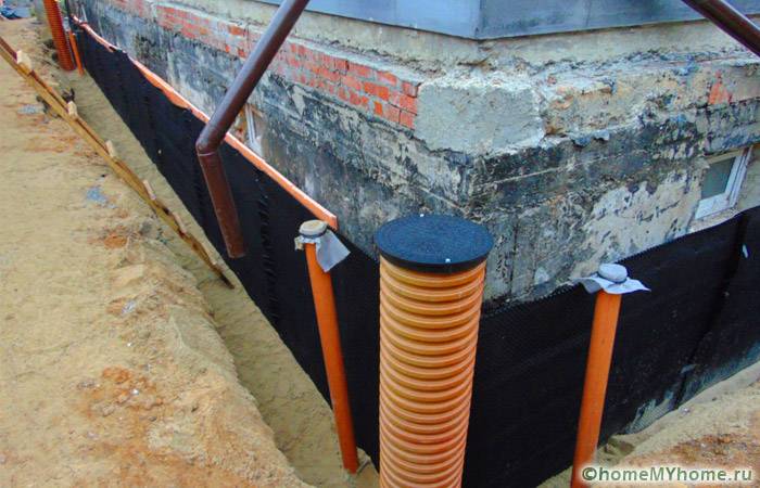The process of erecting a closed moisture removal network is very laborious, since it involves laying pipelines in the ground with subsequent burial. For the work, it is necessary to purchase suitable perforated pipes and geotextiles to protect the surface of the elements from silting.
