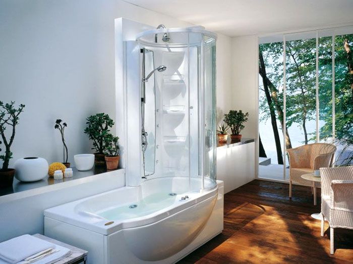 A shower cabin with a bathtub can be installed in almost any room of a residential building without fear that water will damage the materials used in the decoration of this room