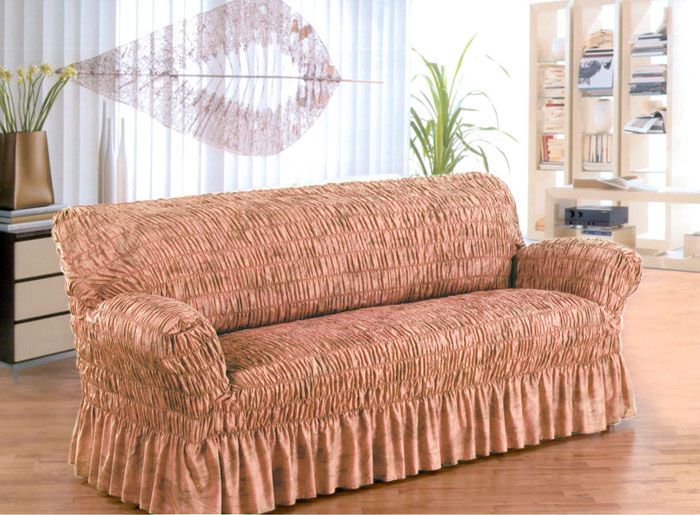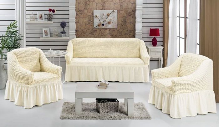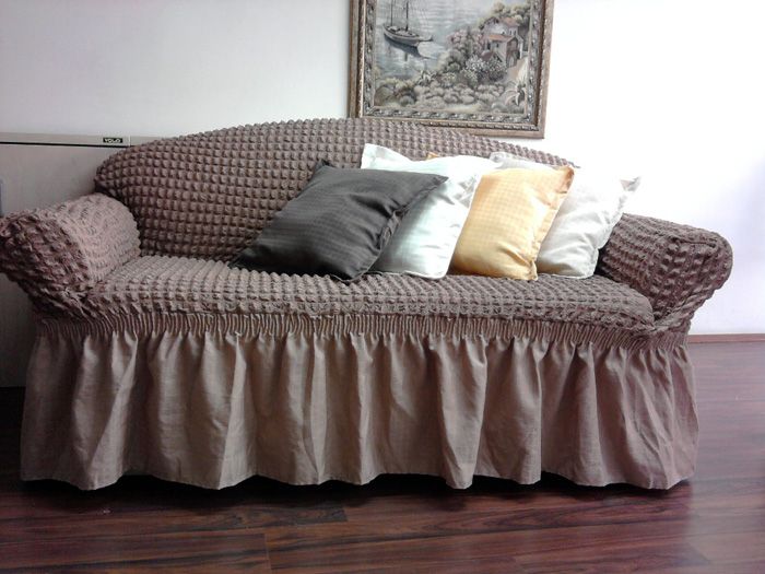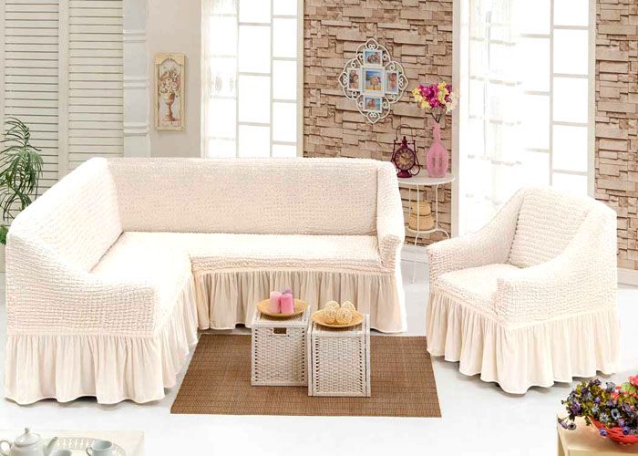 It should be added that such a sofa cover can be easily combined with other textiles in the interior. The presence of jewelry in the form of patterns, fringes, lace or ruffles in some models is even more appreciated by hostesses. You can also choose models for furniture with or without armrests.
