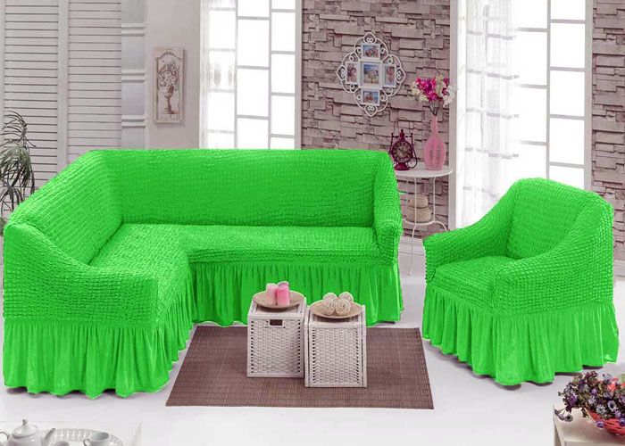 The versatility of the cover lies in the fact that the structure of the product allows you to stretch it on both a sofa and an armchair. Furniture can be of any shape: for a long model, and for a corner sofa, the same euro cover is suitable.